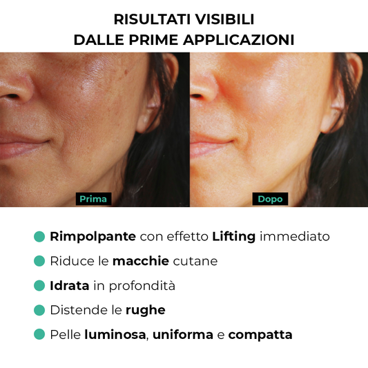 ScopriRigeneraLift effetto lifting immediato. Con alto concentrato di attivi migliora la barriera epidermica, l'elasticità della pelle e distendere le rughe con effetto tensore istantaneo.