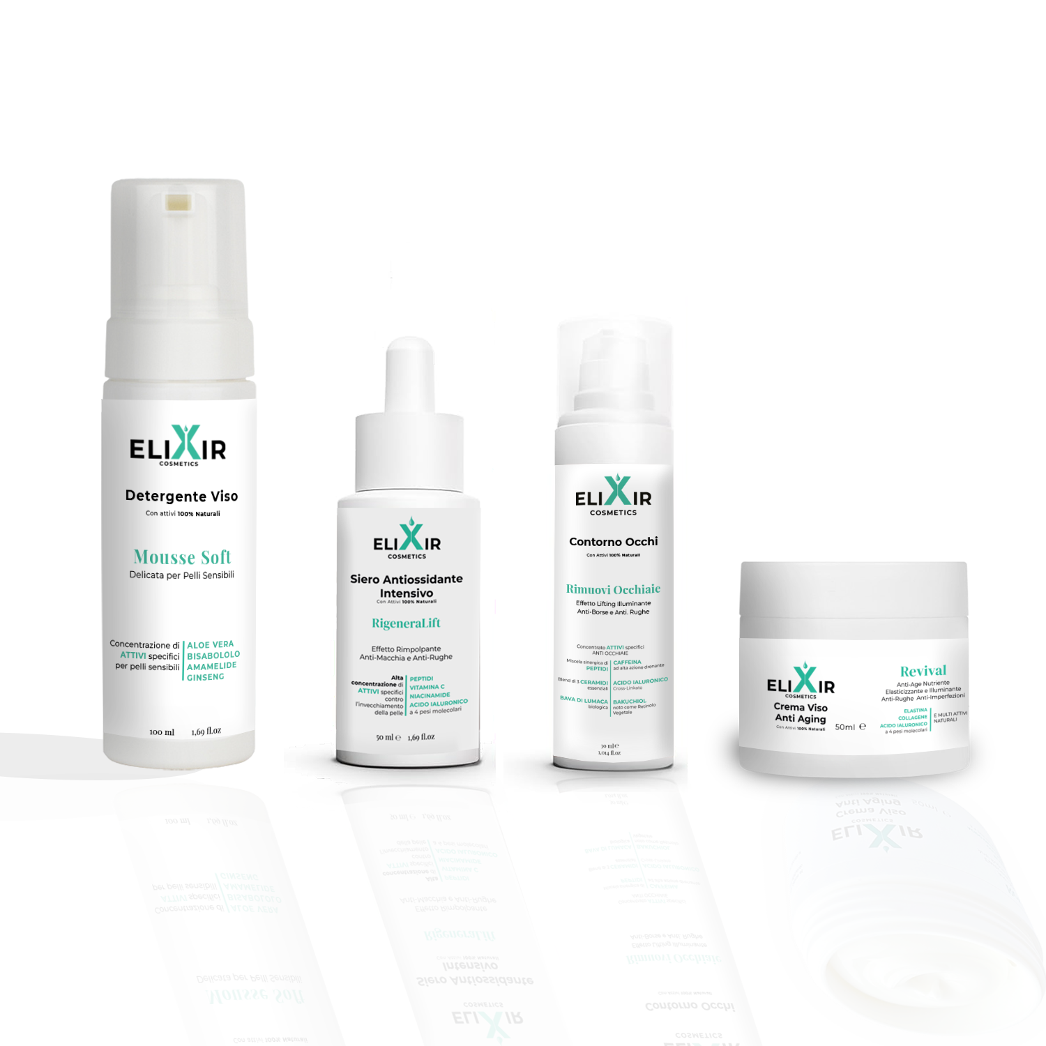Quattro prodotti di alta qualità progettati per offrire una cura completa e lussuosa alla tua pelle. Ogni elemento è formulato con ingredienti pregiati e tecnologie avanzate per garantire risultati eccezionali.